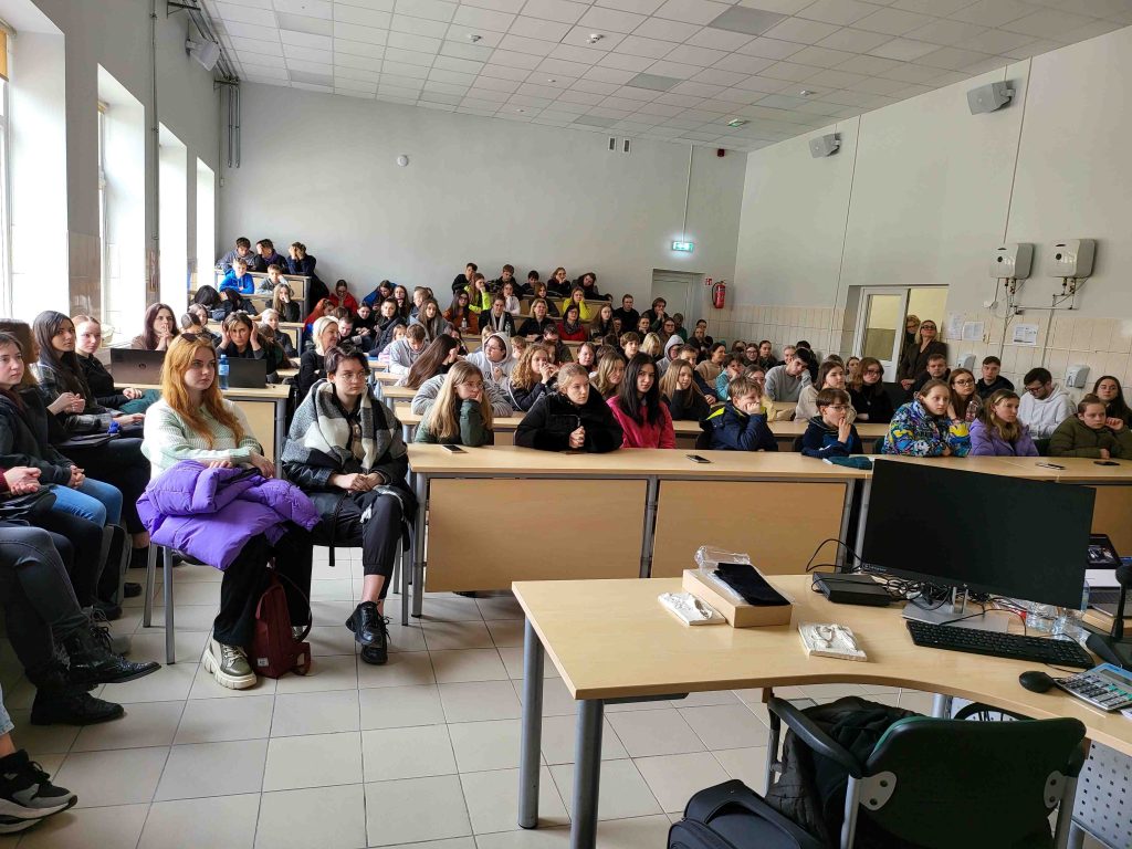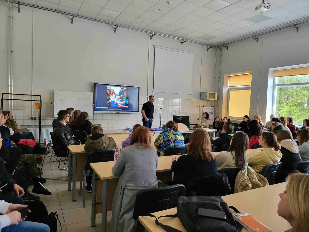 Po paskaitos dėstytojai Rūta Karalienė ir Aivaras Paukštė moksleiviams pristatė Veterinarijos studijų programą, aprodė kabinetus, kuriuose vyksta studijų procesas.