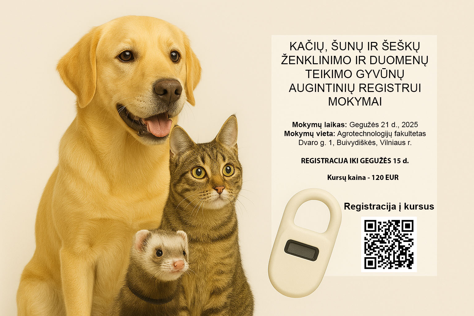 Gegužės 21 d. kviečiame dalyvauti mokymuose „Šunų, kačių ir šeškų ženklinimo ir duomenų teikimo gyvūnų augintinių registrui“.
