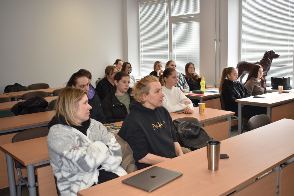 Gegužės 8 d Agrotechnologijų fakulteto Veterinarijos studijų programos studentus aplankė „Agrokoncerno“ grupės personalo-administracijos direktorė Rasa Šakauskienė ir „Ateities ūkio“ gyvulininkystės vadovas Edgaras Monstys.
